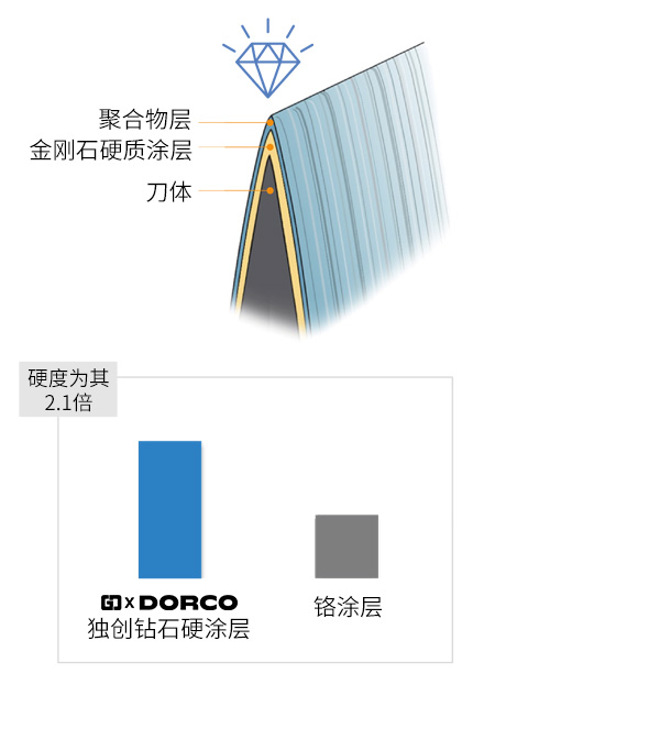 GDxDORCO独创钻石硬涂层技术,涂层硬度是普通铬涂层的2.1倍,形成坚硬耐磨保护层,让刃口持久锋利不钝化,连续切割500次仍性能稳定。